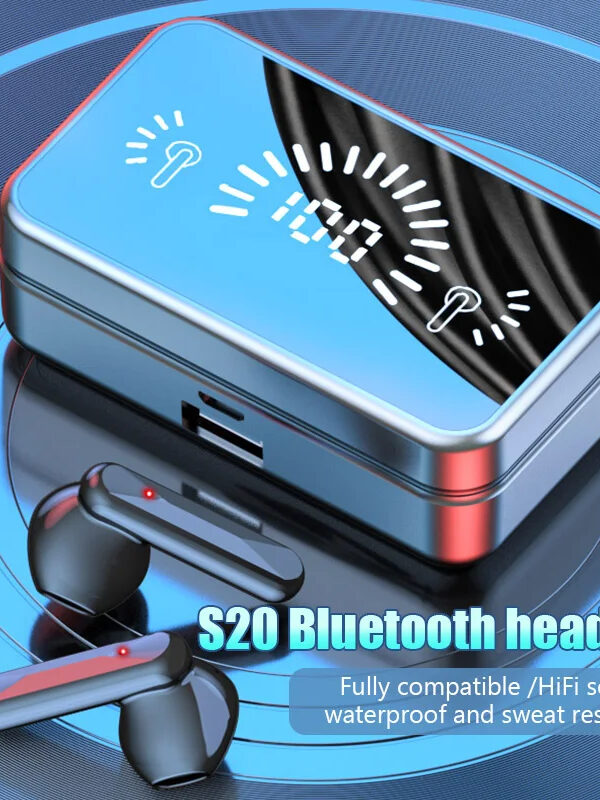 Auscultadores sem fio S20 TWS auscultadores bluetooth sem fio com caixa de carregamento cancelamento de ruído LED auscultadores